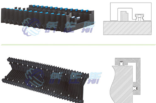 所有的風(fēng)琴防護(hù)罩均可以水平、豎直或橫向使用,保證運行平穩(wěn)且無噪音。通過使用厚度小的原材料可以使其壓縮達(dá)到現(xiàn)代機(jī)械狹小工作空間的要求。(它的行程壓縮比可達(dá)10:1)風(fēng)琴防護(hù)