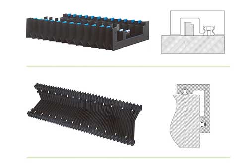 風琴防護罩廠家生產的風琴防護罩可水平、垂直或者橫向使用,為了保證此種機型的運行平穩(wěn)且無噪音,在風琴防護罩和導軌的接觸部位加裝了特殊材料,通過使用厚度小的原材料可以使其
